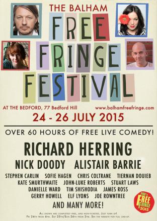 You want Edinburgh previews? What's that? You don't want to pay for them? Then can I humbly suggest that you a) stop being such a tightarse and b) head to Balham's Bedford pub this weekend for the final two days of the Balham Free Fringe Festival. This year's laugh-in has pulled together a formidable line-up of comedians heading to Edinburgh and the occasional refusenik who isn't going but still has material to work up. Among those appearing today alongside politically engaged Chris Coltrane are multi-media arty oddball Caroline Mabey, John-Luke Roberts and Alistair Barrie. There's also a chance to see Danielle Ward doing her dim hip-hop character Dani Frankenstein, which I caught in Latitude last week – it was supposed to be intentionally bad but it was so convincing people didn't realise it was a joke and were walking out shaking their heads in disbelief. The shows take place in three different rooms from 2.30pm so you'd better check this website link and get planning your schedule pronto. There is no charge, though as with the PBH Free Fringe next month if you want to drop some money in a bucket on your way out to show your appreciation I doubt if you will be shunned by the performers.