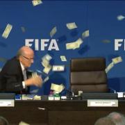 Comedian Simon Brodkin, better known as Lee Nelson, managed to get to the front of the FIFA press conference today. He made a quick speech and showered President Sepp Blatter in $600-worth of bank... more