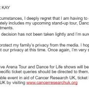 Peter Kay has just issued the attached statement on social media, announcing that he has cancelled all upcoming work projects.The statement says that this is due to unforeseen family... more