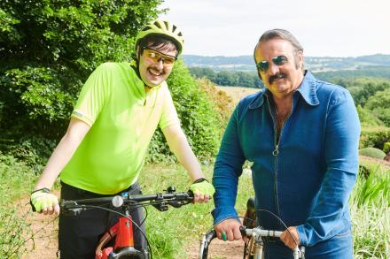 Michael (Al Roberts) and Mammoth (Mike Bubbins) enjoy a bike ride