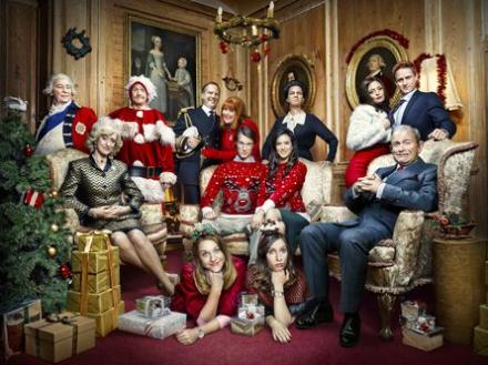 A picture has sneaked out to show The Windsors celebrating Christmas - please note that this is from the C4 comedy and definitely not the real royals.