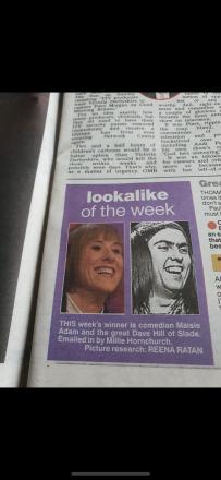 Yorkshire-born comedian Maisie Adam has tweeted that her father has just pointed out on the family Whatsapp group that his daughter has been compared to legendary West Midlands guitarist Dave Hill from Slade, who, like Maisie, was also known, among other things, for his slightly unusual hairstyle. Adam shaved the back of her hair off during lockdown out of boredom and it has become a bit of a talking point whenever she has appeared on television.