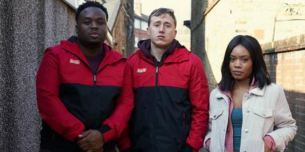 Kayo has drawn on his genuine experiences delivering pizzas around Camberwell when he was a teenager, but the tone is more sentimental than gritty. Even the crime portrayed feels lighthearted. When there is a violent mugging it is a pretty genial one rather than a scary one. And Joshua clearly has a good soul, at one point saving the life of a potential suicide played by Phil Daniels. There is good support too from David Mumeni, as Joshua's boss who calls himself Mario but is about as Italian as a plate of falafel and Weruche Opia (pictured with Kayo and Barklem-Biggs), as Naomi, who works in the pizza shop.