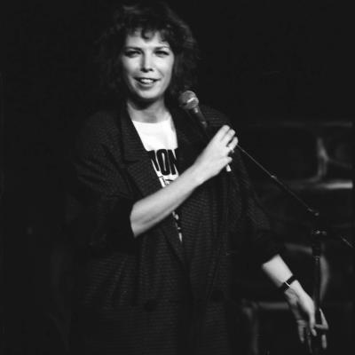US comedian Kit Hollerbach looking a bit like Bridget Christie. Hollerbach was one of the original impro pioneers in the 80s. She often worked with Jeremy Hardy and fellow American Mac McDonald who looked a bit like John Goodman and used to do messy things making masks out of slices of bread.